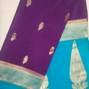 Pure Semi Silk Vintage Purple Color With Morpho Blue Border