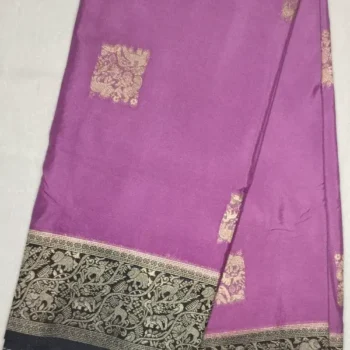 Pure Semi Silk Old Purple Color With Camelot Border