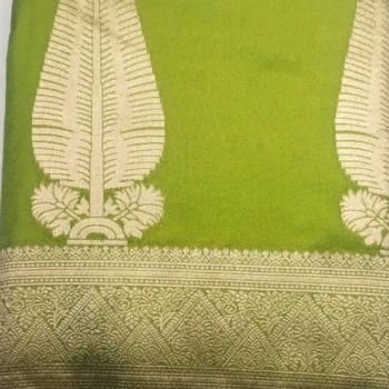 Pure Semi Silk Red Color With Green Border
