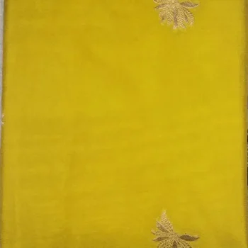 Pure Semi Silk Old Gold With Aubergine Border