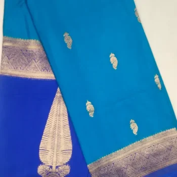 Pure Semi Silk Bahama Blue Color With Luxury Blue Border