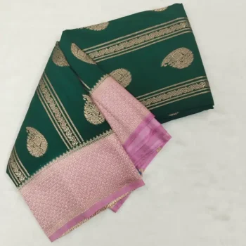 Semi Silk Green Saree with pink border